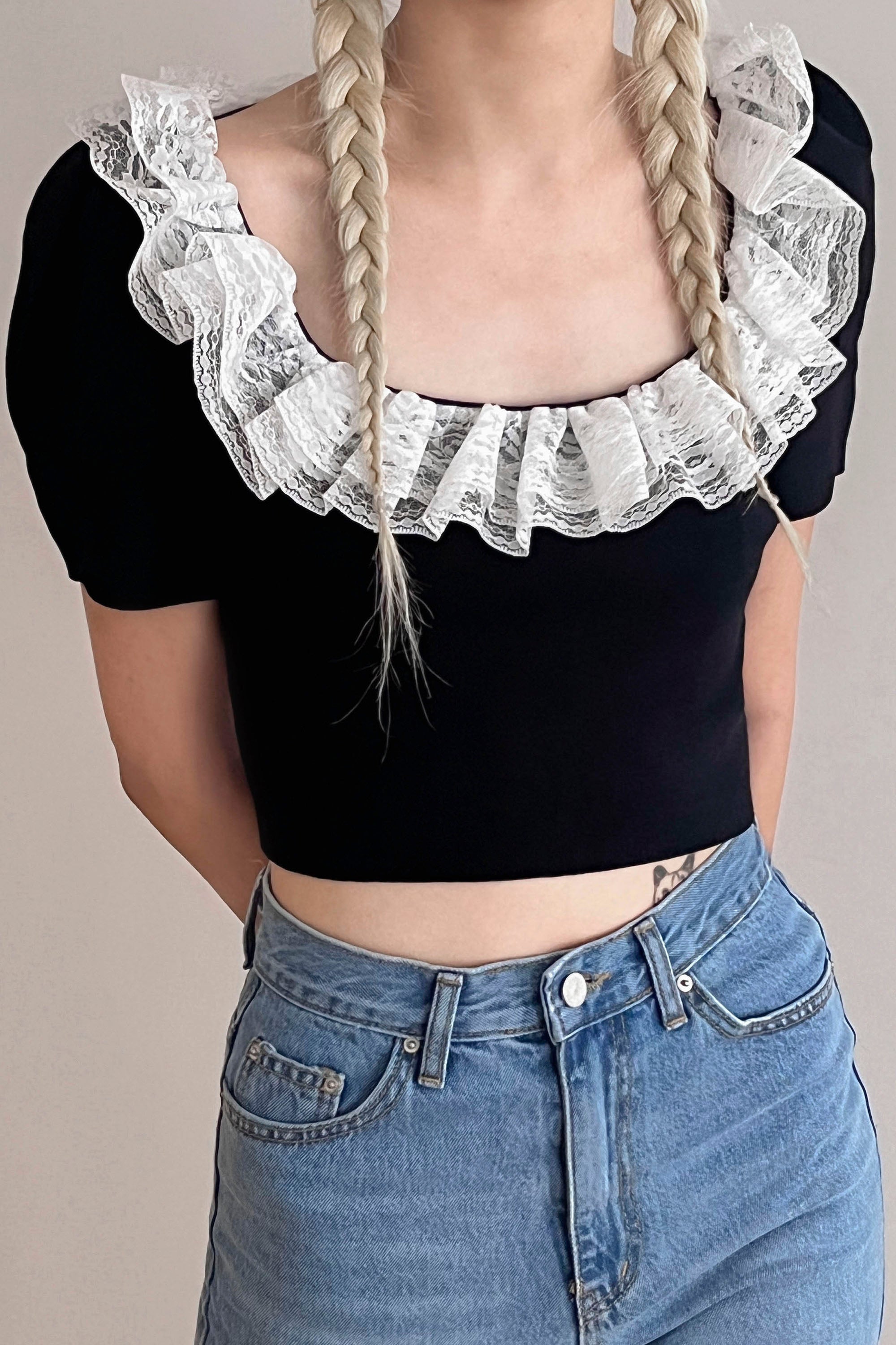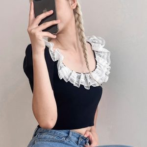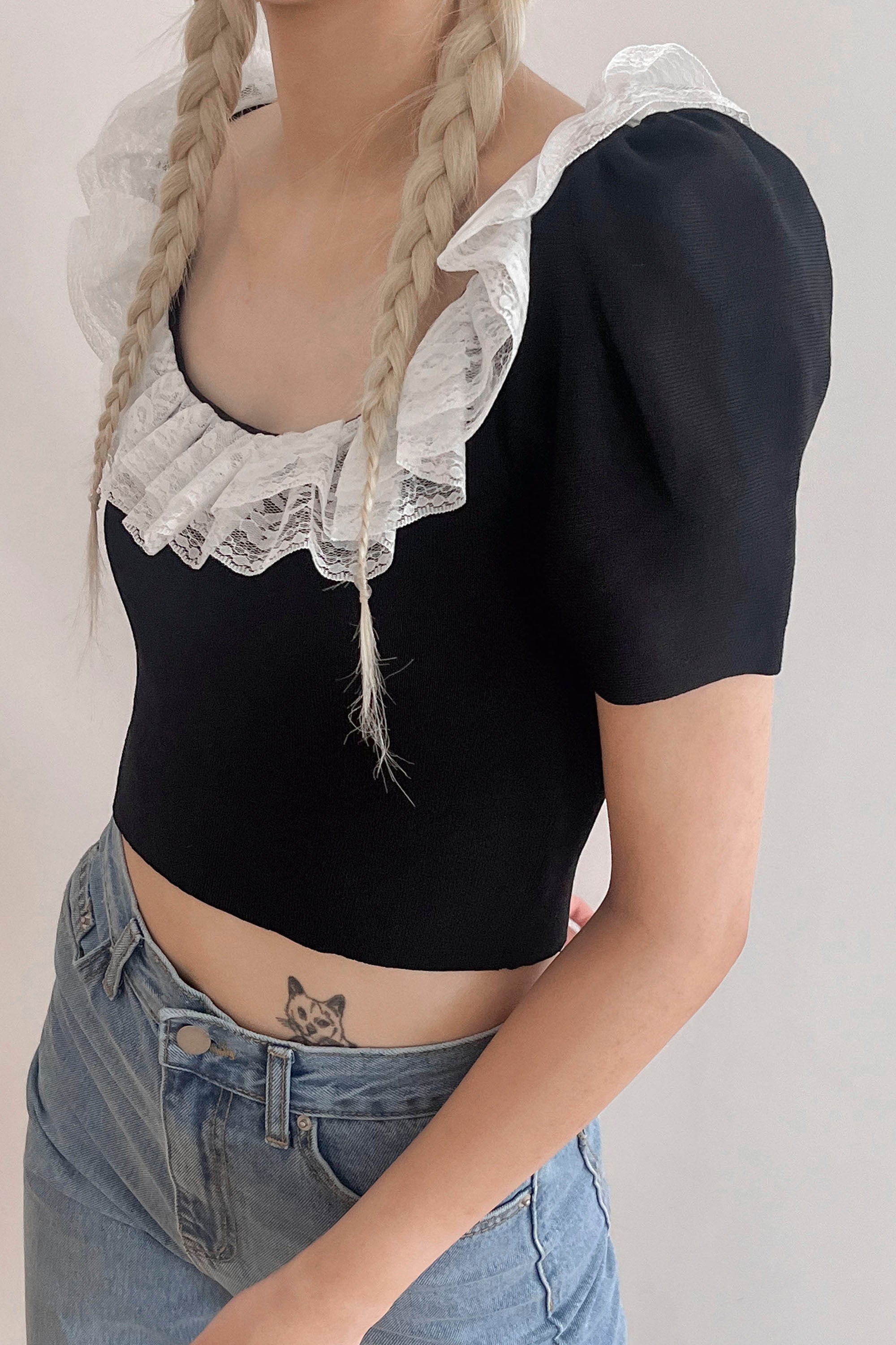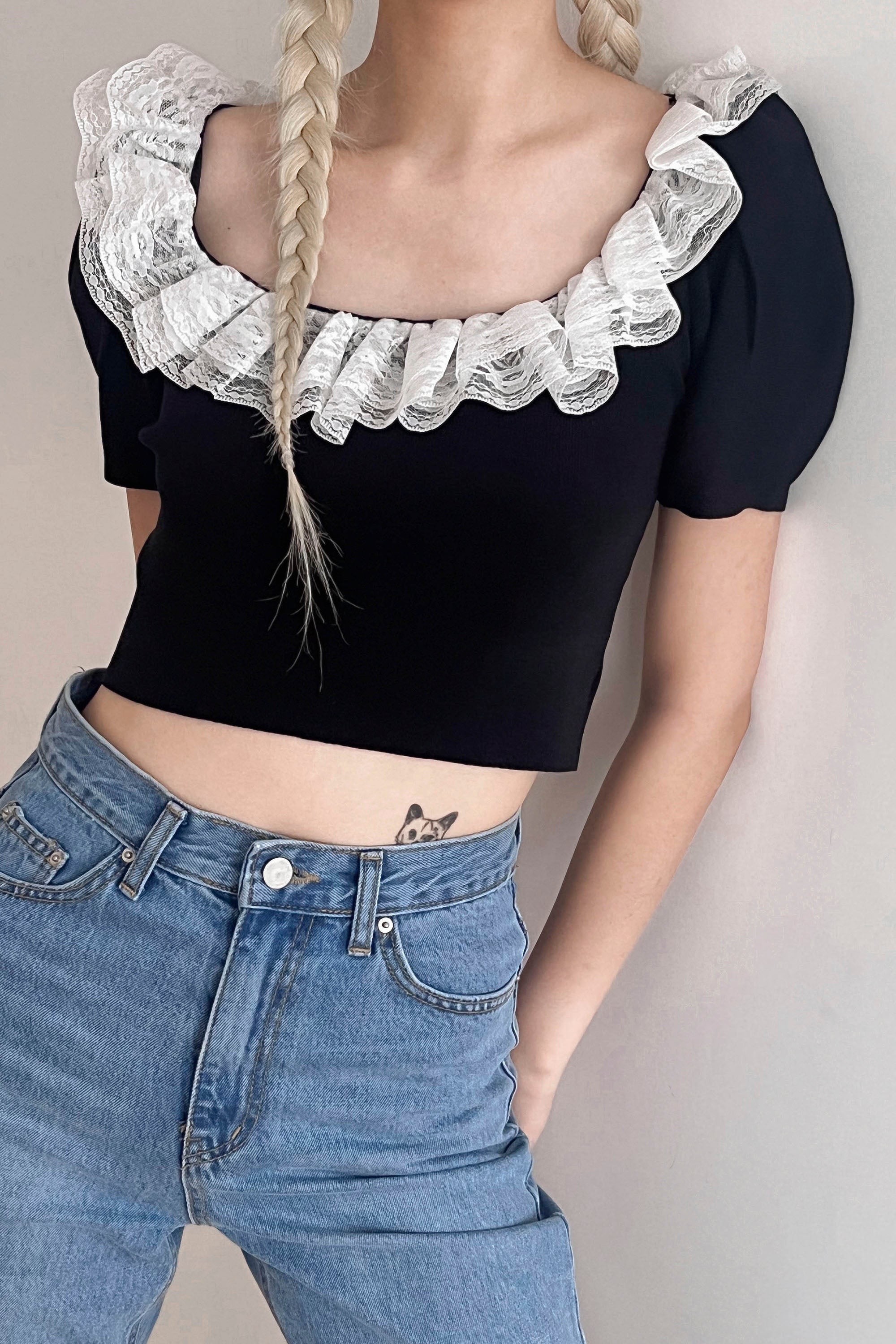 Ella Crop Knitted Top Rounded square neck with lace inset Puffed sleeves Cropped length Product Specification : 100% Acrylic Flat […]