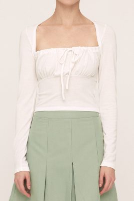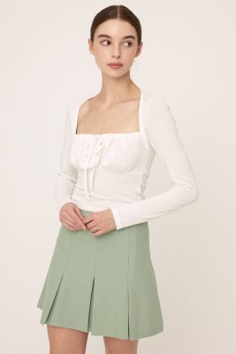 - Front ruched detail with adjustable strings