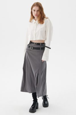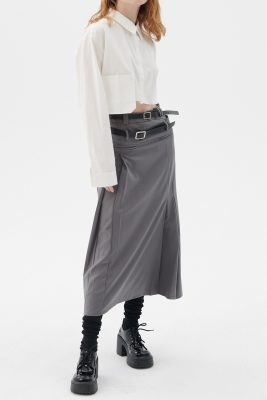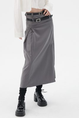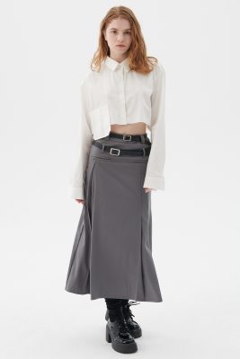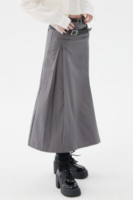 - Tucked pleat skirt with two belts lines