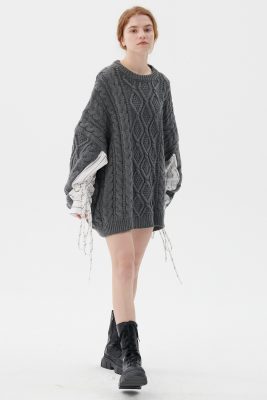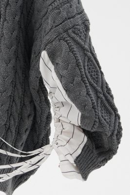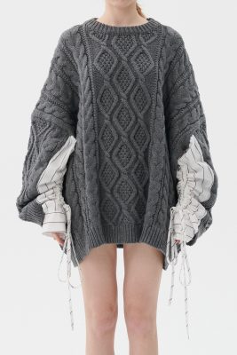 • Featuring a spliced striped shirt sleeves design, a ribbed knit material all over, an deliberately oversized fit silhouette, and pull on style
