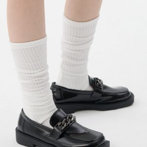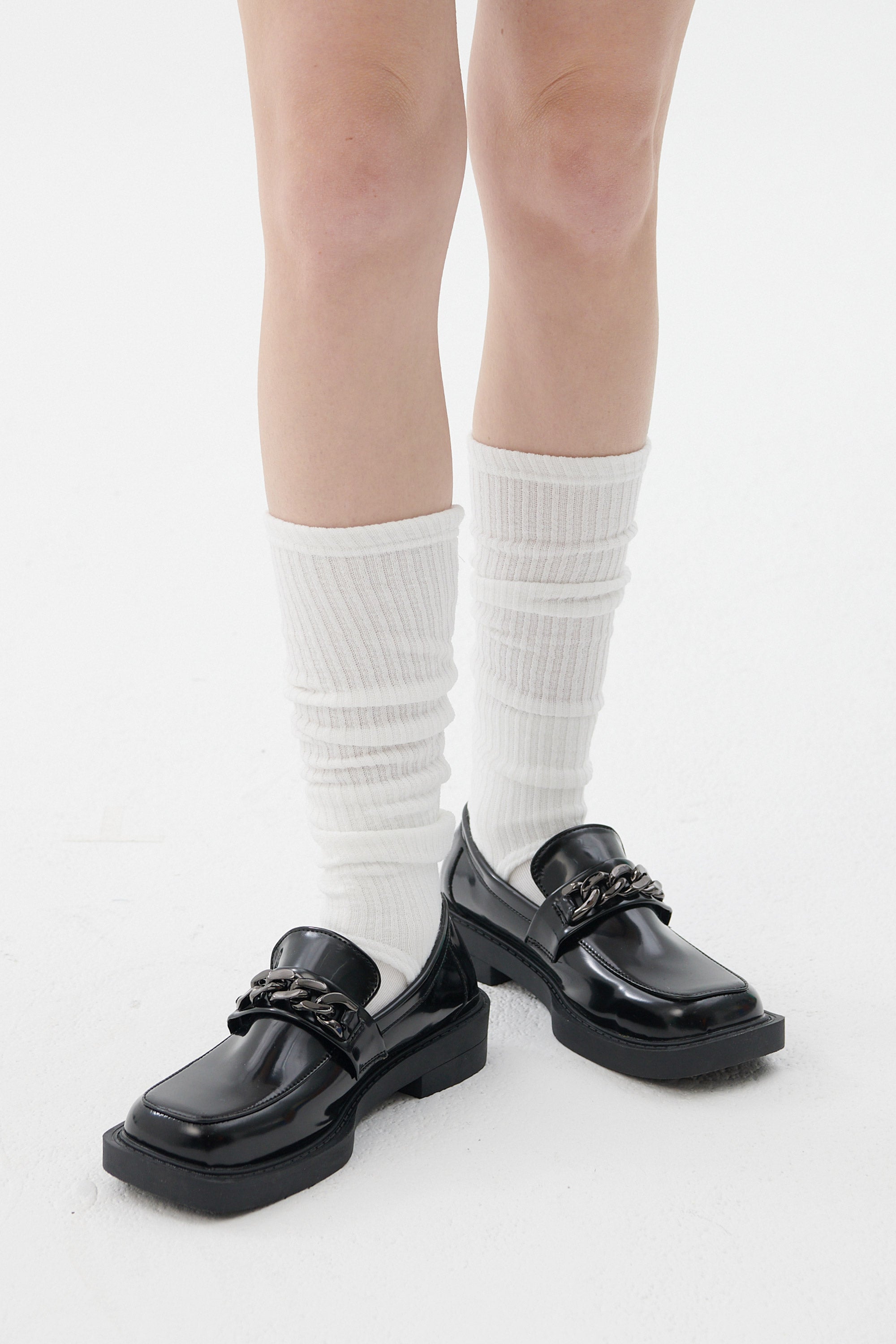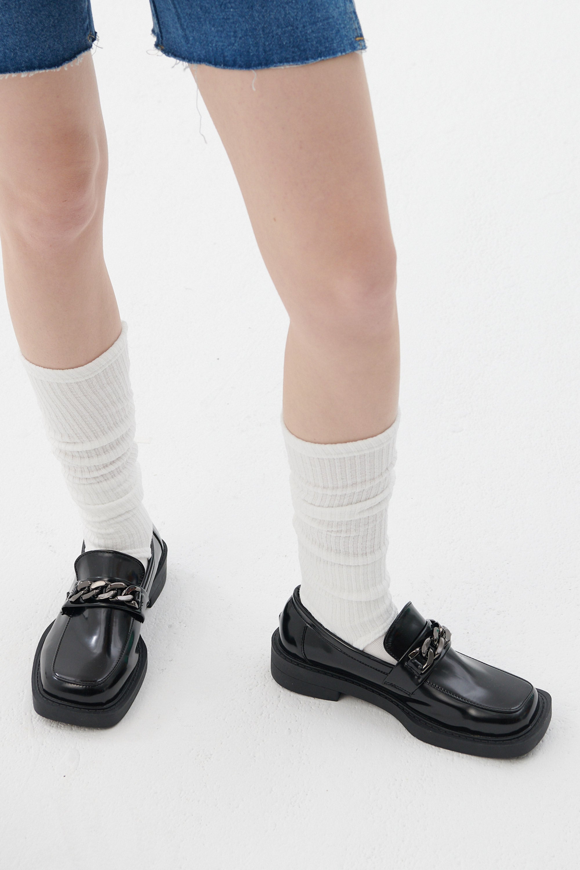 Squared Toe Chain Loafers This product has been hand-picked by Storets’ stylists. Faux leather * Professional Clean Only