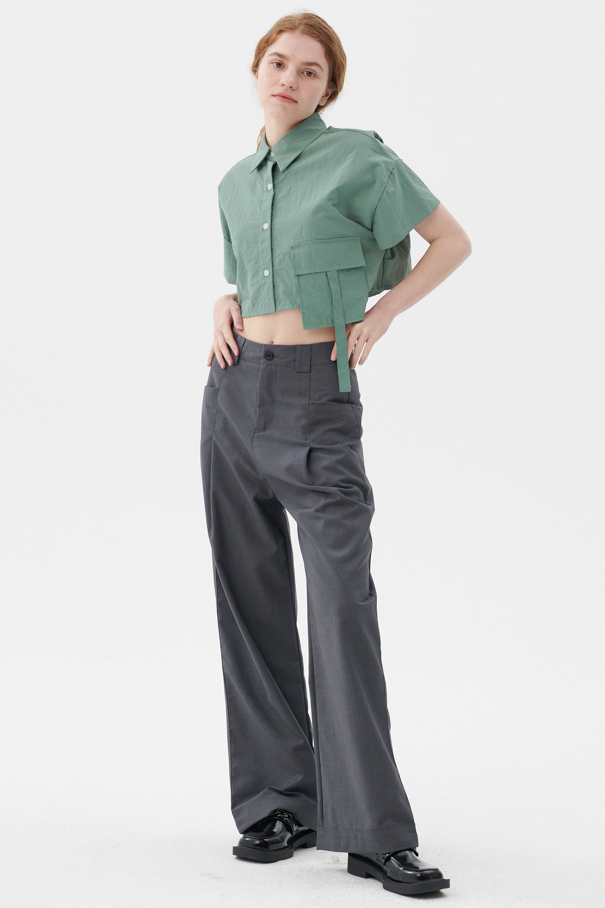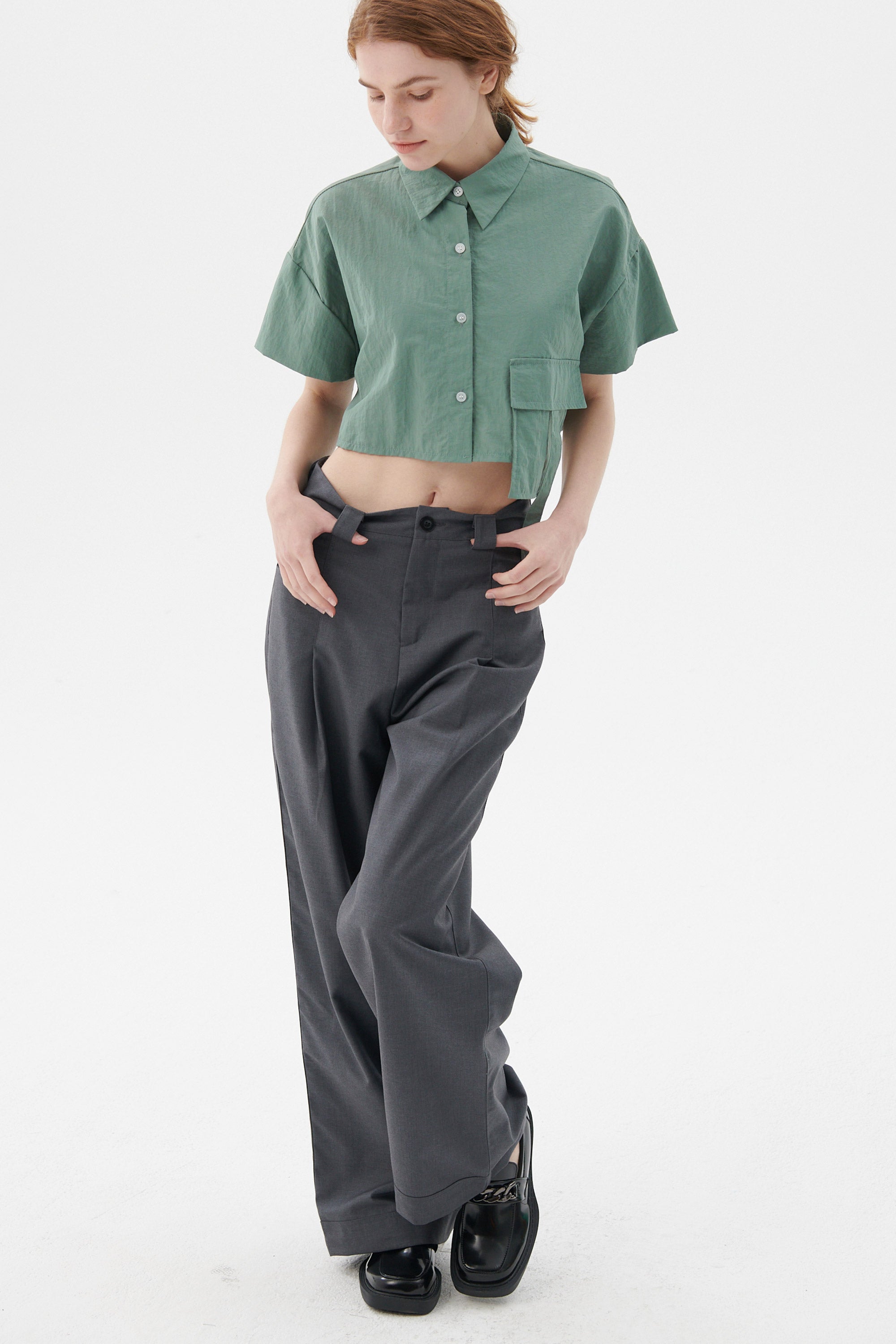 Cropped length Slim fit Asymmetric hem Contrast stitch Product Specification :95% Cotton 5% Spandex Professional Clean Only / Do Not […]